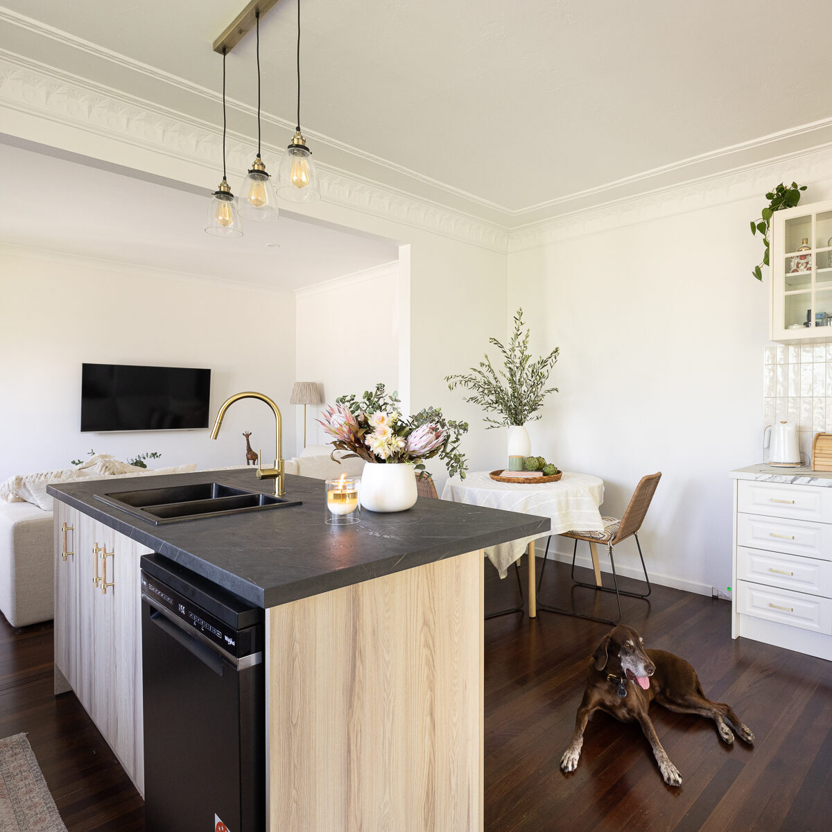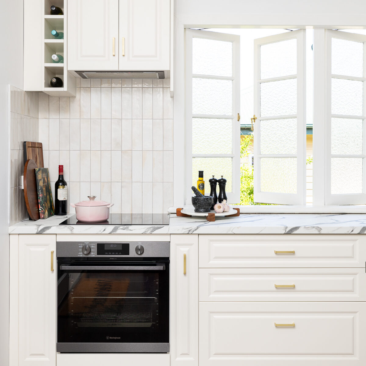 Reiko's 1955 Queensland in Rocklea had solid bones and beautiful features like the decorative cornice, hardwood floors and casement windows. The house had been a long-term rental property and the kitchen and bathroom had dated. Reiko wanted to make the house her primary residence and refresh the inside with a modern country feel. Take a look at the before and after photos below.